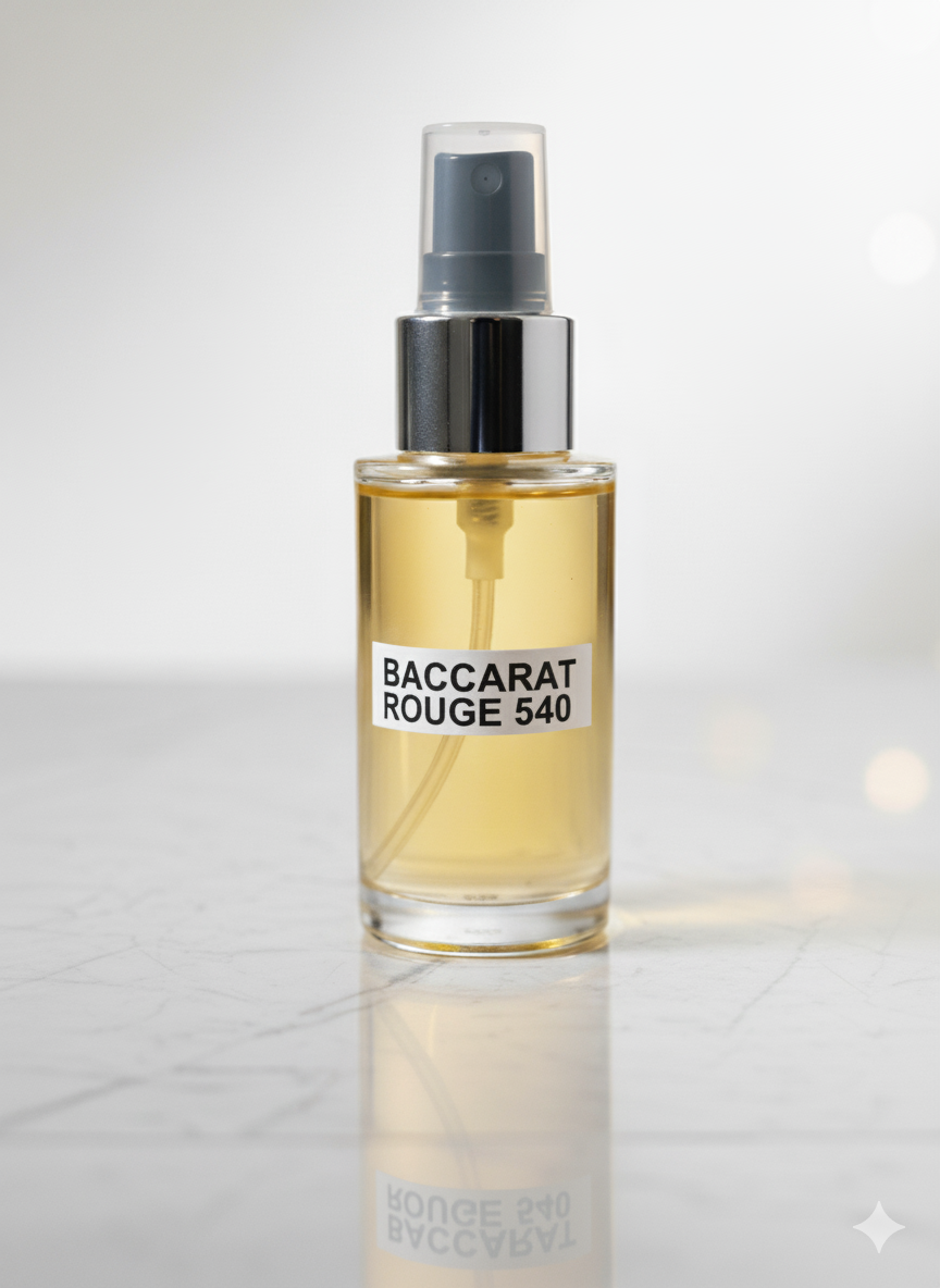 Baccarat Rouge 540 is a radiant fragrance with saffron, amberwood, and jasmine. Its warm, spicy, and woody notes create an unmistakably luxurious scent that captures attention instantly.